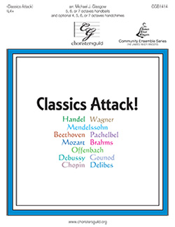 For handbells and chimes (with optional performance schtick), level 4+ A phenomenal concert finale or encore, this medley includes more than a dozen well-known tunes from Beethoven, Brahms, Chopin, Handel, Mendelssohn, Mozart, and more! Play it "straight" or perform it with the optional schtick to ham it up! Commissioned by members of The James River Ringers (Richmond, VA), in celebration of the group's